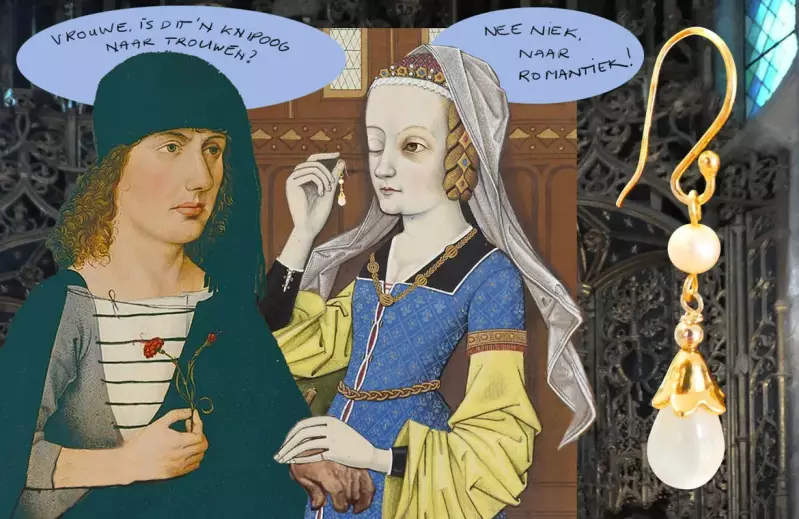Ja, de echte bruid heeft natuurlijk de allermooiste oorbellen, en deze bekoorbelletjes zouden je dus zomaar op een idee kunnen brengen ;-)... De schattigste dauwdruppeltjes ooit, natuurlijk van mysterieuze maansteen, met een kapje van vermeil (zilver met een echt gouden laagje) en een idem kraal en dan, in het tussenstukje, een zoet zoeteke van zoetwaterparel. Mooie gouden haken maken de bellen compleet. Op naar t feest, zou ik zeggen! O ja, de bellen zijn 4,5 cm lang.