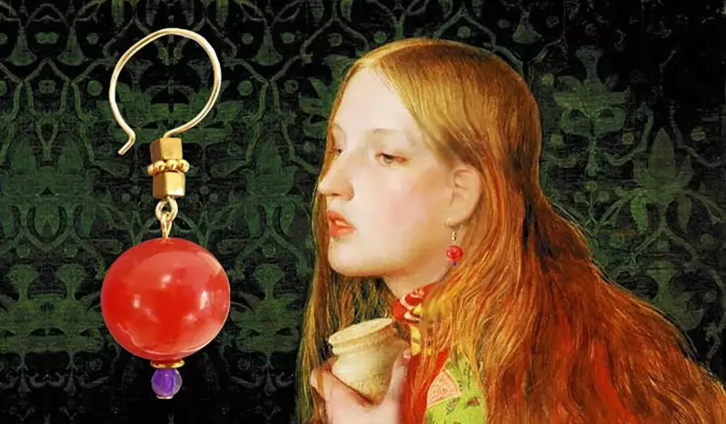 Zo'n hele grote wijnbal kochten we vroeger voor 5 cent bij juffrouw van Zanten. Je kon er heel lang mee doen. De kunst was om hem niet door te bijten. Je moest je inhouden, zoals je je in moet houden om niet te proeven of deze heel lekkere bellen van prachtig zachtglanzende rode jade misschien ook nog lekker smaken. Aan de onderkant zijn ze voorzien van een klein hematiet discje en een verrukkelijk facetgeslepen paars jadetje. Aan de bovenkant zie je 2 kubusjes van diep goudglanzende hematiet, van elkaar gescheiden door een vermeil spacer; 24 K goud op sterling zilver. Overigens zijn ook alle andere metalen onderdelen voorzien van een mooi laagje goud en is de totale lengte van de bel 5 cm.