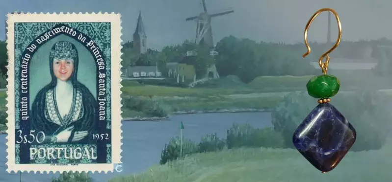 Blauw en groen is boerenfatsoen. Eigenlijk is dit een stoere oorbel, maar hij moet Welsum heten, naar dat piepkleine dorpje aan de IJssel, waar je als vanzelf van de kleuren blauw en groen gaat houden omdat ze het prachtige landschap bepalen. Sodaliet en een schitterende jade rondel. De metalen onderdelen zijn verguld en de totale lengte van deze oorbellen is 4,9 cm.